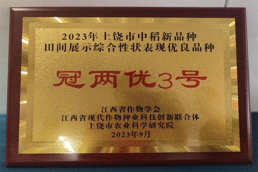 獲評2023年上饒市中稻新品種田間展示綜合性狀表現優良品種
