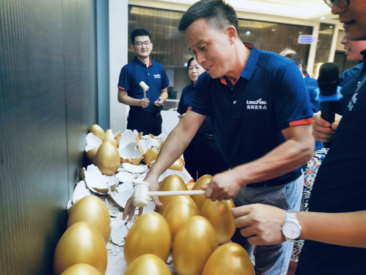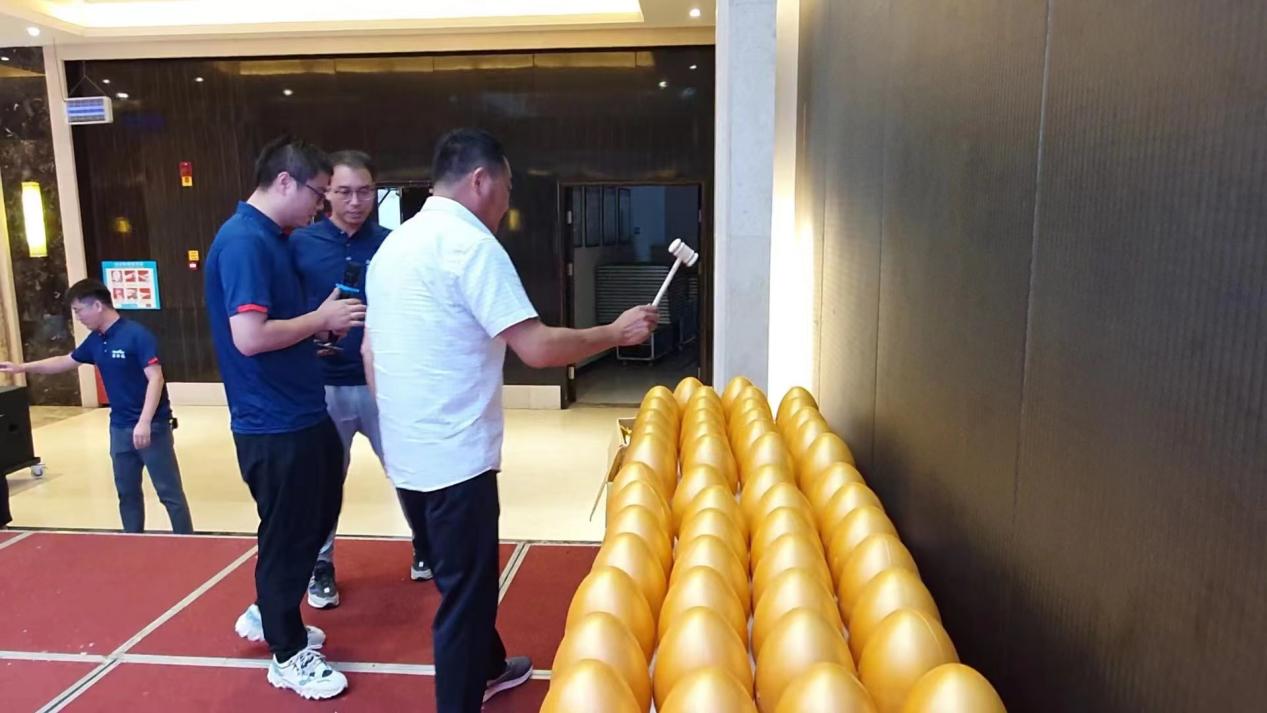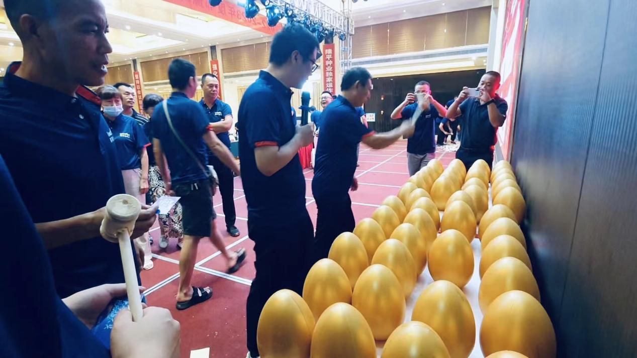 緊接著,公司為了激發現場營銷精英積極投入到英兩優華占推廣事業當中,開展了隆重的砸金蛋活動。各縣市的合作伙伴踴躍打款,爭取砸金蛋名額。