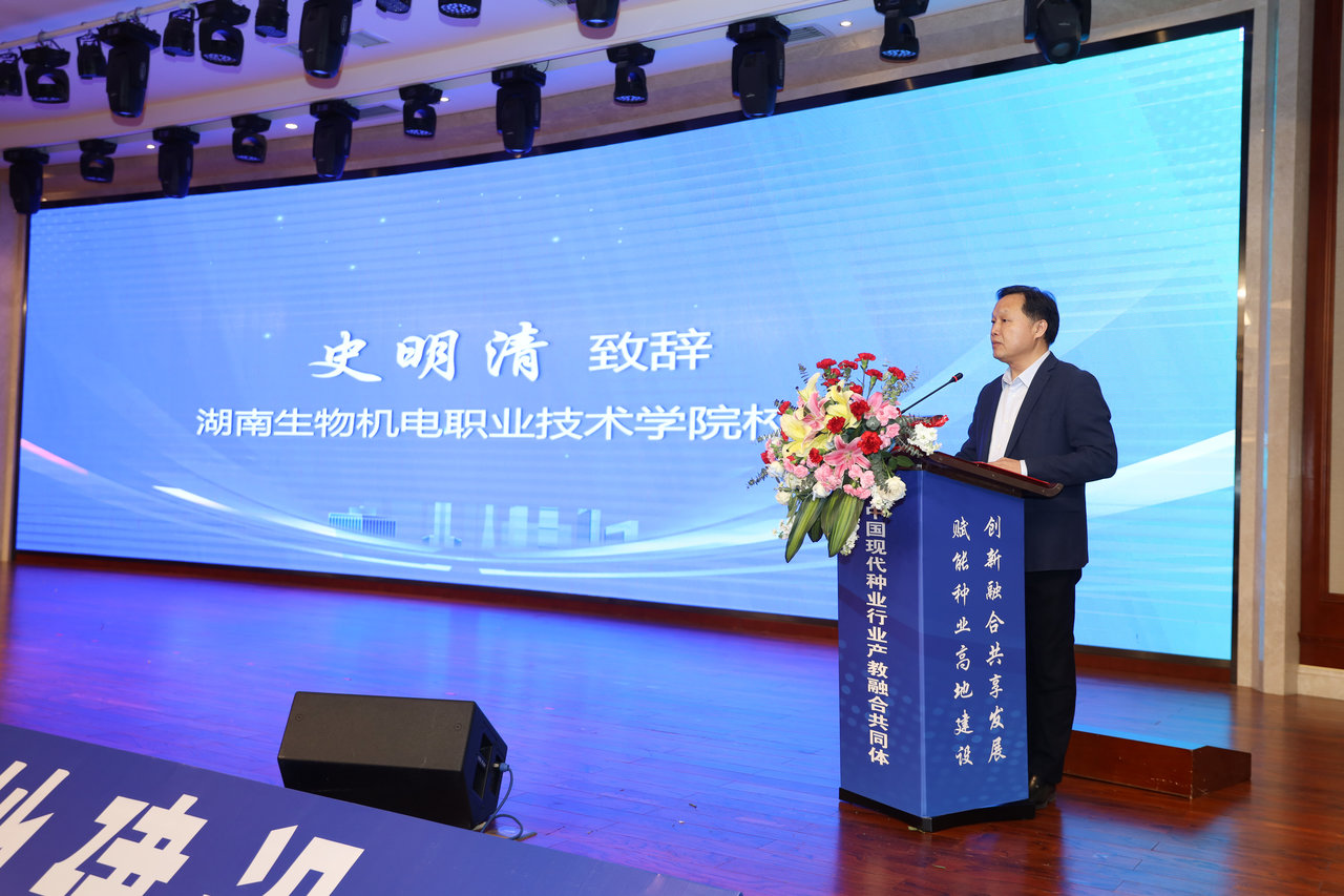 大會(huì)首先由湖南生物機(jī)電職業(yè)技術(shù)學(xué)院校長史明清致辭,他表示,作為共同體牽頭單位之一,學(xué)校將依托自身專業(yè)背景和優(yōu)勢(shì),主動(dòng)作為,細(xì)致謀劃,全力推動(dòng),緊跟產(chǎn)業(yè)發(fā)展趨勢(shì)和行業(yè)人才需求,有效借助政、行、企、校、研多方資源,與共同體成員單位一道,共商專業(yè)規(guī)劃,共議課程體系,共創(chuàng)工學(xué)一體,推動(dòng)共建共享、合作共贏的嶄新局面。