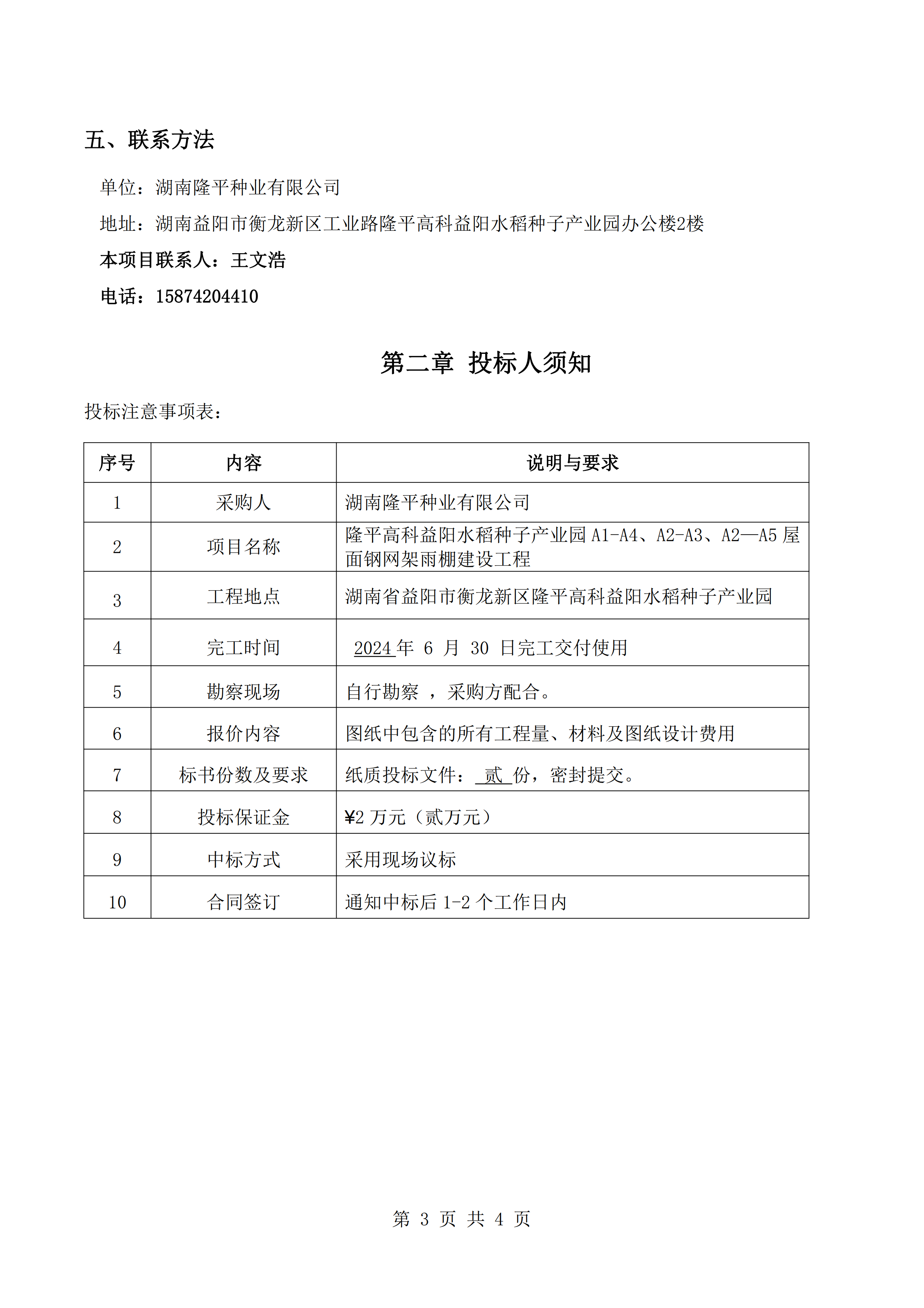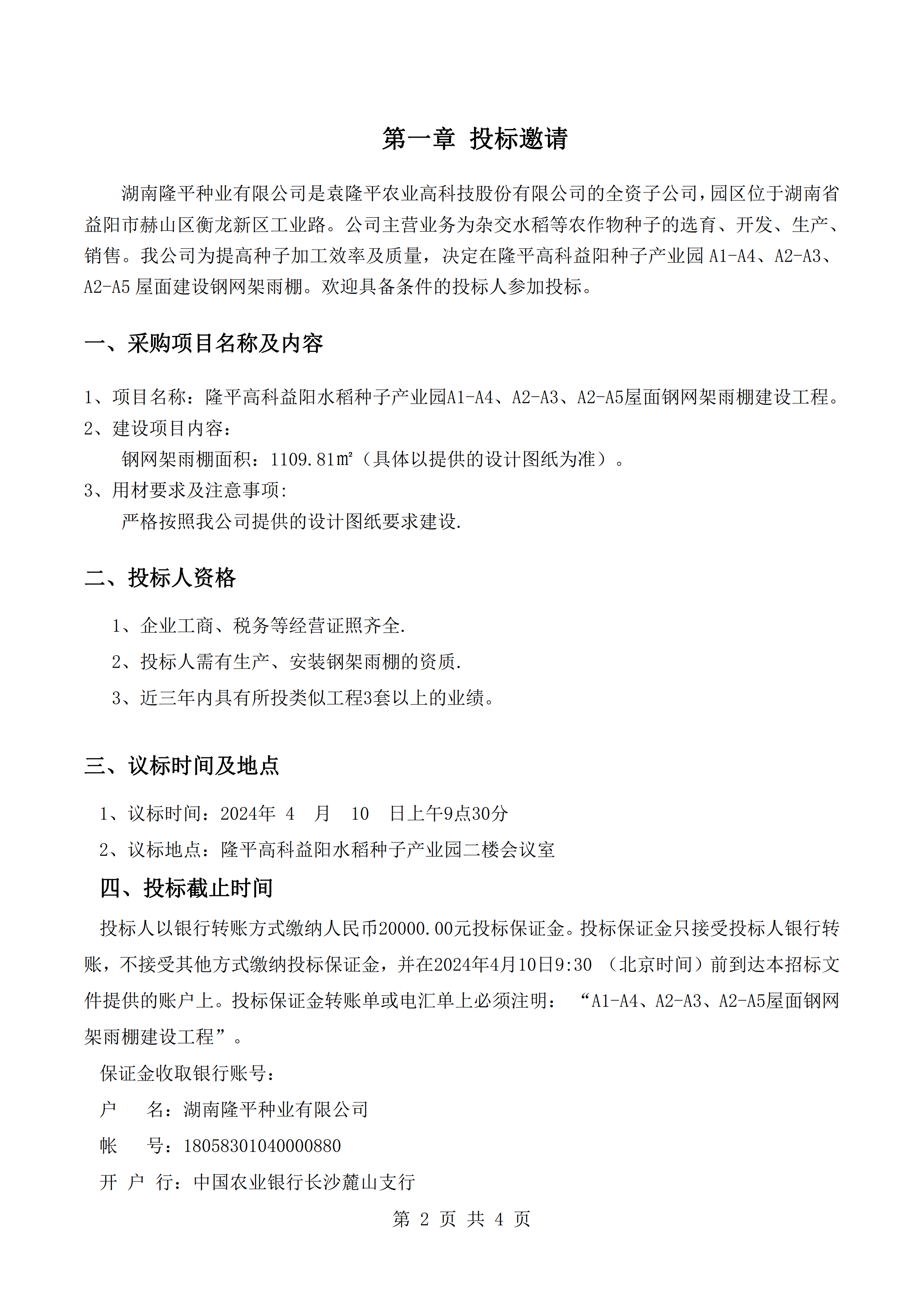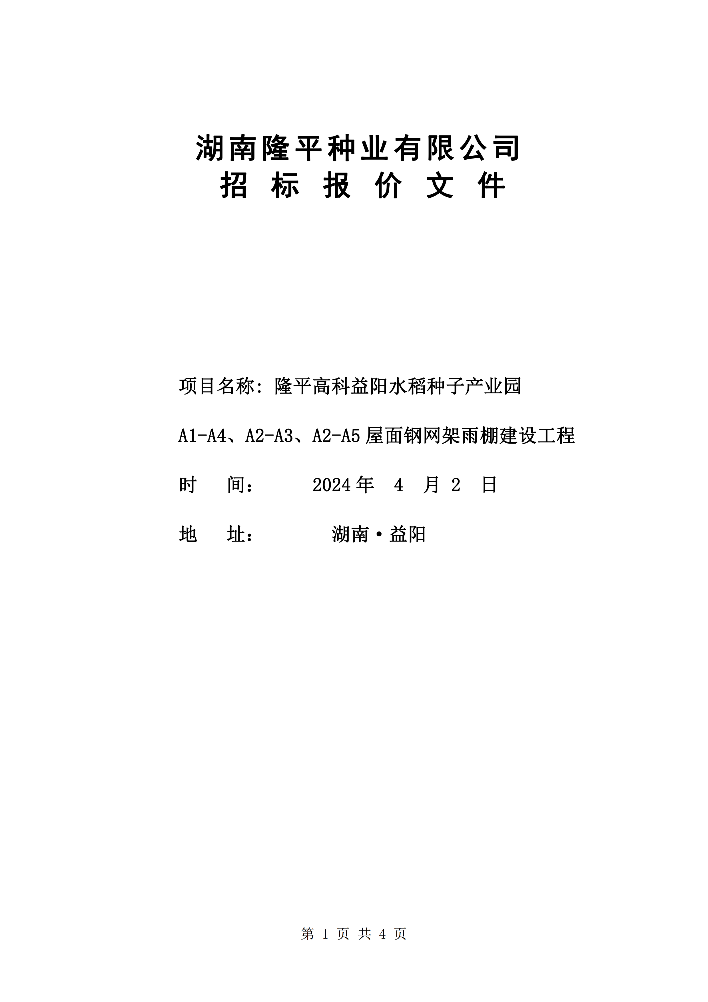 隆平高科益陽水稻種子產(chǎn)業(yè)園 A1-A4、A2-A3、A2-A5屋面鋼網(wǎng)架雨棚建設(shè)工程 中標(biāo)通知書