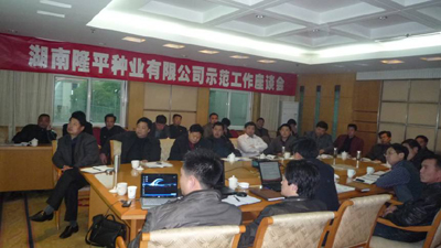 會議最后,范總作了2010年示范工作總結報告及下年度示范工作部署,分享了下個年度的戰略目標和戰略措施,對示范營銷和服務營銷進行交流,并以“我是隆平人”為主題與大家進行心與心的交流,與會人員掌聲不斷。