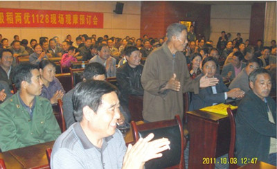 參觀完示范田后,接著進行了室內(nèi)交流會議。首先由定遠(yuǎn)縣隆平種業(yè)技術(shù)栽培專家對今年定遠(yuǎn)縣兩優(yōu)1128表現(xiàn)及種植技術(shù)要點進行了報告。隨后是示范零售商和示范農(nóng)戶發(fā)言,兩位農(nóng)戶代表樸實的語言、真誠的笑容使會場的氣氛步入了高潮。隆平種業(yè)皖東區(qū)域經(jīng)理李奎詳細(xì)介紹了公司情況及2012年公司品種的操作模式,李經(jīng)理激情的演講、詼諧的語言使會場氣氛又一次達(dá)到高潮。會議最后由定遠(yuǎn)代理商興農(nóng)種業(yè)陳增援經(jīng)理對本次觀摩會進行了總結(jié)及對下年度的示范計劃進行了部署。