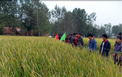 10月3日,在這普天同慶的日子里,隆平種業(yè)與定遠(yuǎn)縣興農(nóng)種業(yè),共同組織定遠(yuǎn)縣零售商和各鄉(xiāng)鎮(zhèn)種植大戶150多人,召開了“湖南隆平水稻觀摩會及巨穗型超級稻兩優(yōu)1128現(xiàn)場觀摩預(yù)訂會”。會議分為室外觀摩和室內(nèi)交流兩大流程。首先對定遠(yuǎn)縣爐橋鎮(zhèn)青洛鄉(xiāng)的兩優(yōu)1128等隆平示范田進行了參觀。