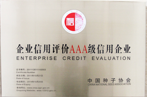 熱烈祝賀我公司在中國種子協(xié)會開展的2011年種子行業(yè)信用評價中榮獲“中國種子行業(yè)信用評價AAA級信用企業(yè)”。公司是首批獲評的AAA級信用企業(yè)之一,是此次評選結果中最高信用級別企業(yè)。