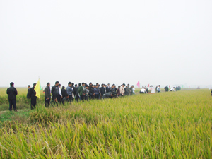 其次,經(jīng)銷商和農(nóng)戶還一起觀摩了公司的晚稻新品種深優(yōu)9586、豐源優(yōu)2297,大家對這兩個晚稻品種的株葉形態(tài),耐寒性,抗倒伏能力和產(chǎn)量也大加贊賞。