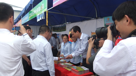 會議現場,農業部原部長陳耀邦,國家農技中心夏敬源主任、自治區政協農業委員會黎梅松主任、自治區農業廳張明沛廳長、中國水稻所程式華所長,南寧市肖志鋼副市長、廣西農科院陳彩虹副院長、南寧市農業局唐波文局長等領導來到我司的展臺前,查閱了超級稻的宣傳資料,肯定了隆平種業過去的成績,也勉勵我們再接再厲,不斷推陳出新,育出更好的品種服務農民。