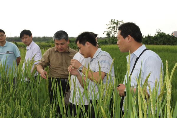 考察現(xiàn)場(chǎng),大伙的目光都被兩個(gè)1128吸引住,從株葉型態(tài)到長(zhǎng)勢(shì)長(zhǎng)相,從每穗粒數(shù)到結(jié)實(shí)率(兩個(gè)品種結(jié)實(shí)率均超過90%),無不令人折服。同時(shí),隆平的其他后續(xù)品種,如廣占2010、P88S/1812、培矮64S/1815等組合,在示范田里也嶄露頭角,優(yōu)勢(shì)相當(dāng)明顯。
