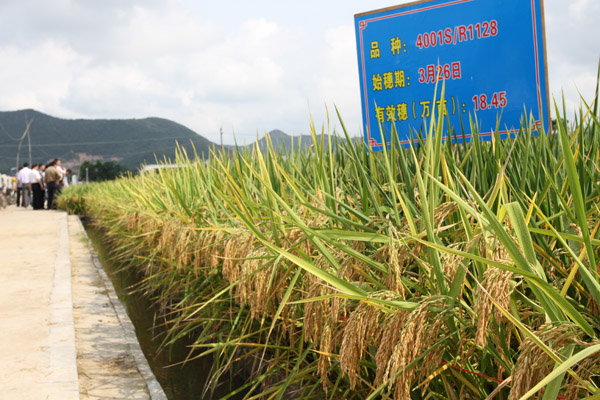 在三亞市田獨(dú)鎮(zhèn)展示的新品種有數(shù)十個(gè)之多,均是隆平高科后續(xù)強(qiáng)勢(shì)新組合。據(jù)4月中旬考種測(cè)產(chǎn)數(shù)據(jù)顯示,廣占63-2S/HR1128和4001S/HR1128兩個(gè)品種理論產(chǎn)量分別達(dá)到1107.4公斤和1123.5公斤,均突破第四期超級(jí)稻1000公斤的大關(guān)。
