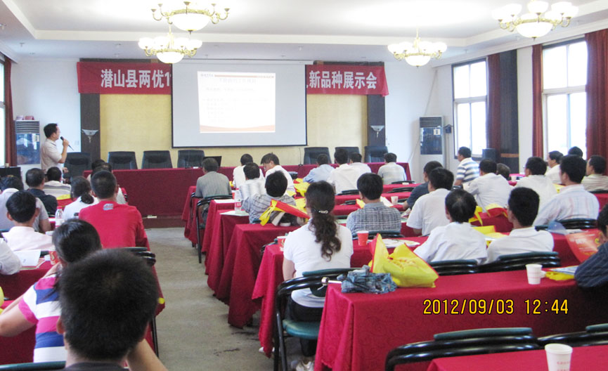 9月3號上午,安徽分公司攜手潛山縣種子公司在當?shù)卣匍_了公司重點品種現(xiàn)場觀摩會。參與現(xiàn)場觀摩會的人員主要是潛山縣20余個鄉(xiāng)鎮(zhèn)的經(jīng)銷商,共計50余人。