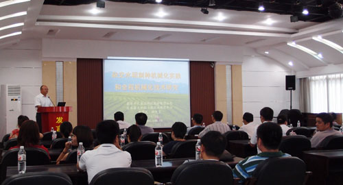 會上,劉愛民研究員就雜交水稻制種全程機械化實踐和全程機械化技術研究做了專題報告。報告就雜交水稻制種全程機械化的必要性和可行性做了分析,并汲取了國內外成功經驗,展示了我司在開展制種全程機械化所取得的研究成果。此次報告既是對我司近年來制種全程機械化探索的成果匯報,也是對雜交水稻種子產業發展的展望。報告過程中,聽取報告的領導和專業人士多次感嘆機械化給傳統農業帶來的新機,并充分肯定了我司在雜交水稻制種全程機械化進程中所作出的努力。