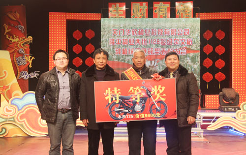 湖北分公司總經理姜文嘉在會上對獲獎者表示祝賀,為隆平種業能給廣大種植戶增產增收感到高興并就種業機遇給大家做了精彩的演講。天門市華欣種業總經理何三華就隆平種業新組合廣兩優1128向廣大的獲獎者和鄉鎮經銷商做了介紹,為能為大家推廣好的品種感到榮幸,為大家種出高產感到高興。對隆平種業新組合廣兩優1128各鄉鎮經銷商表現出了極大的興趣。