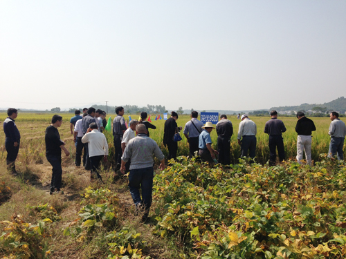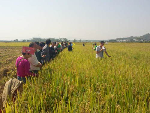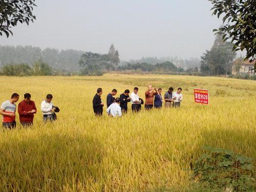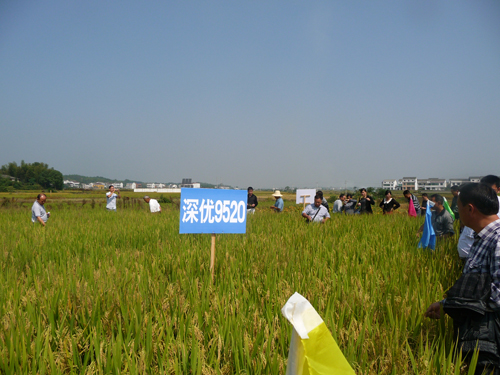 10月9日:華容縣代理商范志杰帶領(lǐng)15位核心零售商觀摩了東山鎮(zhèn)的深優(yōu)9520,另外還組織了近100人/次的農(nóng)民觀摩會(huì)。